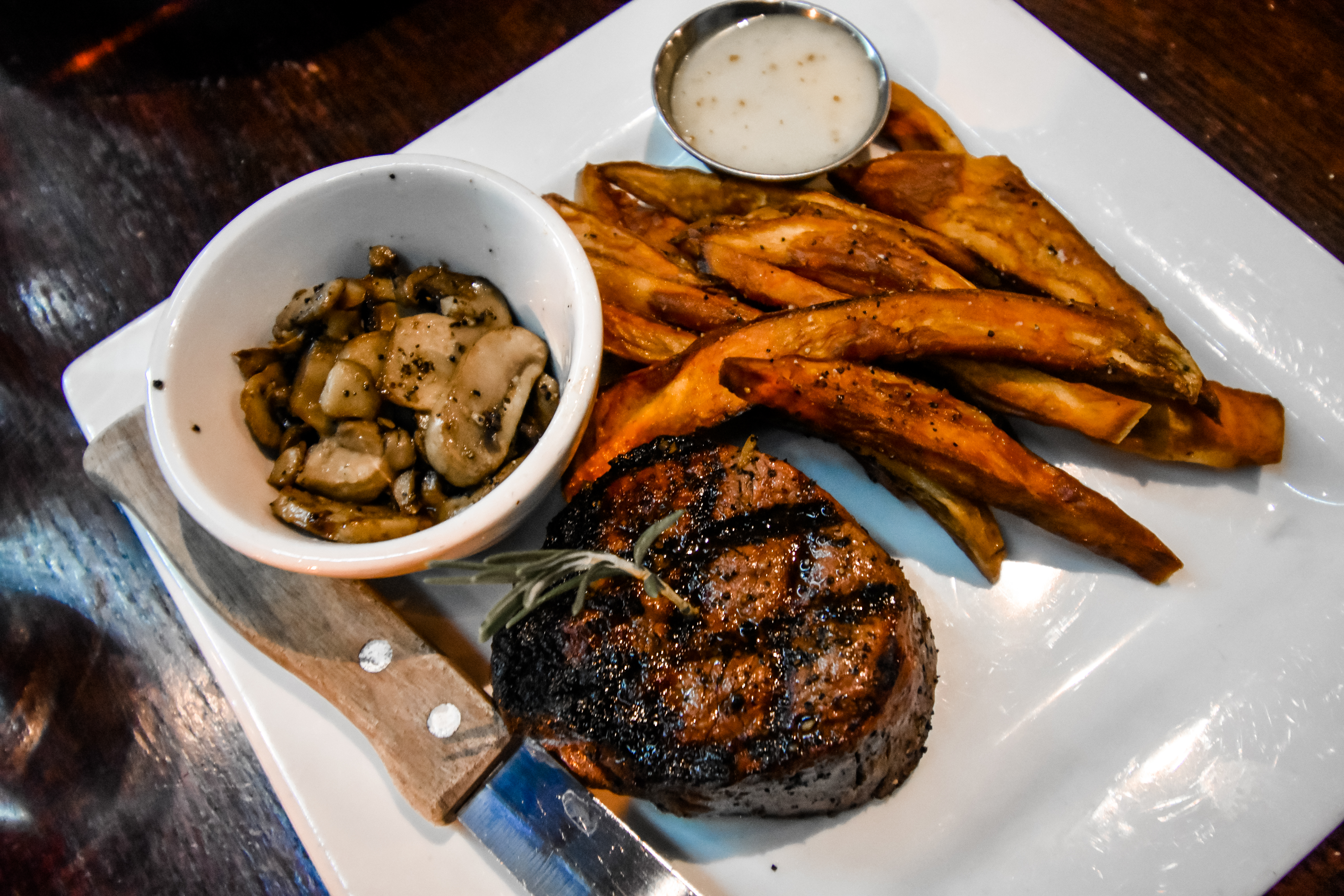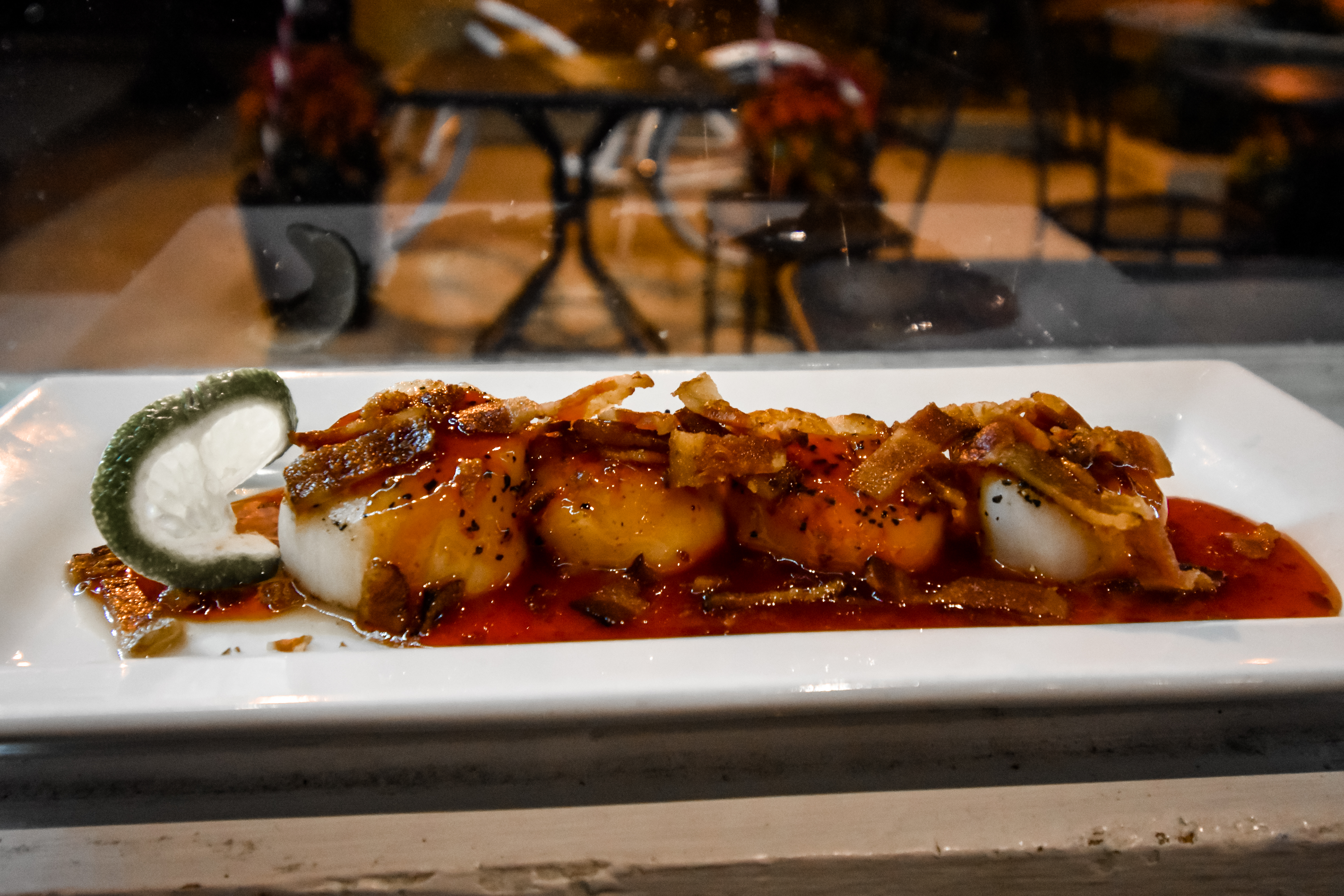 We had such a fun time at The 220 Cafe. We sat and talked with the owner for a long time about everything from how she bought the place to just life itself. She even let us go back to the kitchen to get some footage of her husband (the chef) cooking their famous Shrimp and Grits. And LET ME TELL YOU… they were hands down the best I’ve ever had! The filet was another amazing dish. And we were also treated to some incredible bacon-topped scallops, fried goat cheese, and an apple fritter.