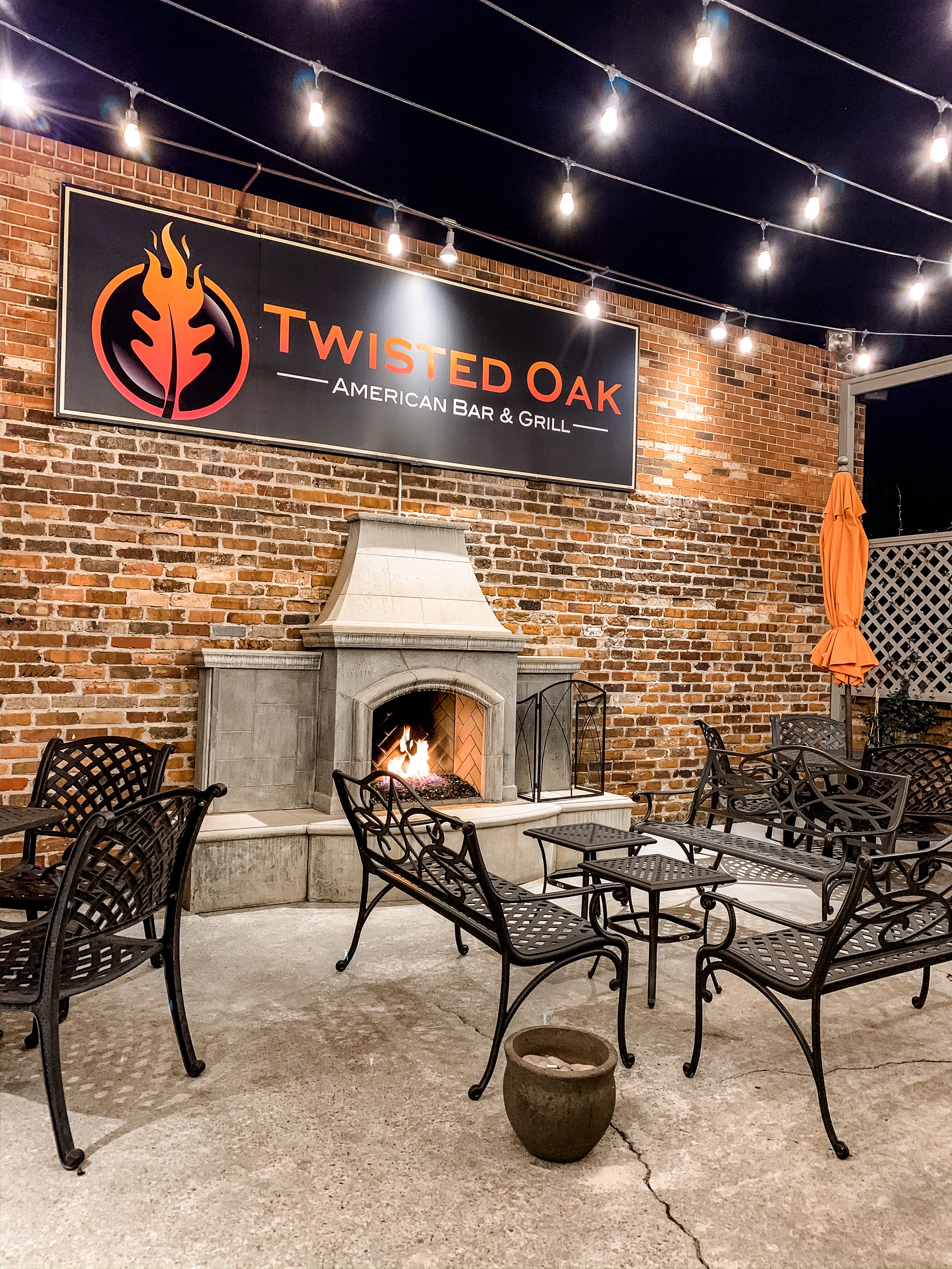 After the play, we were able to try so much good food at Twisted Oak American Bar & Grill, and we left feeling so full! We started with a delicious pimento cheese appetizer and salads. I ordered the pesto chicken and it was out-of-this-world! Amber had the Harvest Pear salad and it was huge!! They even brought out their famous Shrimp & Grits dish for us, which was actually deep-fried and smothered in an incredible sauce! My favorite part of Twisted Oak though was the cozy outdoor fireplace and patio seating. Even though it was cold, we sat outside by the fire and talked for a while after getting some photos.